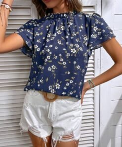Be the first to review “Allover Floral Print Flutter Sleeve Frilled Neck Blouse” Cancel reply