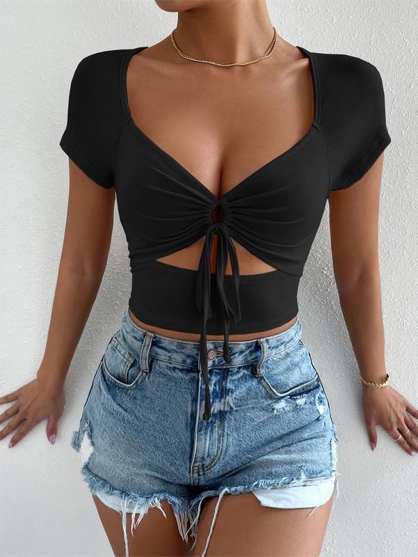 Be the first to review “Cut Out Sweetheart Neck Tie Front Tee” Cancel reply