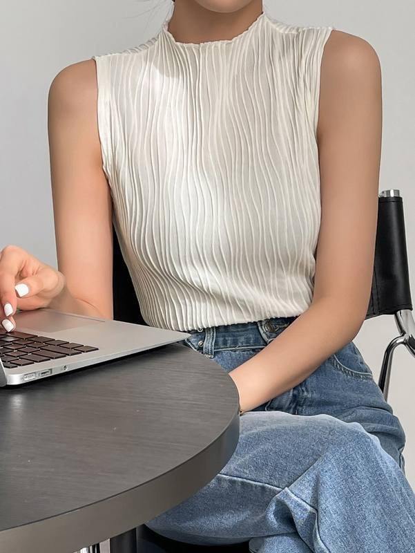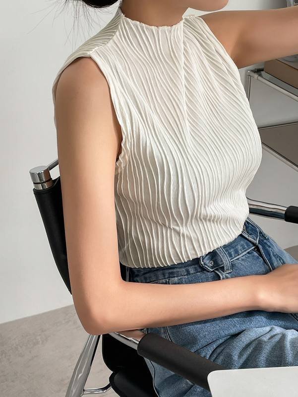 DAZY Stand Neck Solid Tank Top