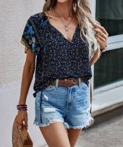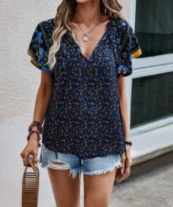 Ditsy Floral Tie Neck Dolman Sleeve Blouse