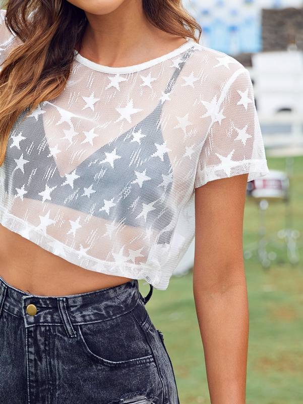 Be the first to review “Star Print Mesh Sheer Top Without Bra” Cancel reply