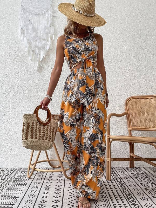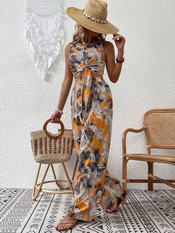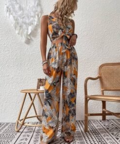 Be the first to review “Tropical Print Knot Front Crop Tank Top & Wide Leg Pants” Cancel reply